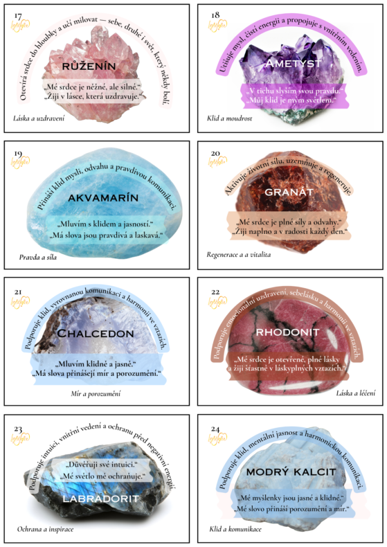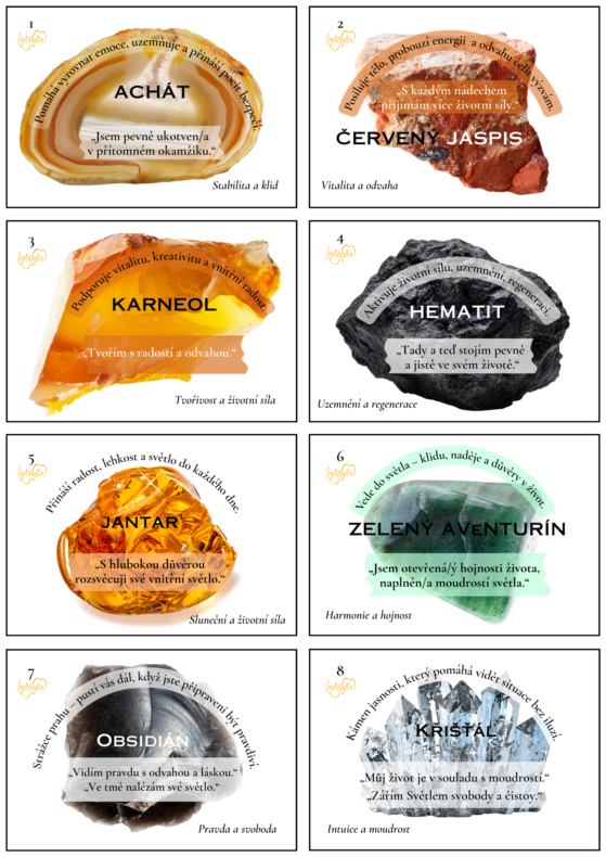 Kliknutím na název drahokamu v textu vpravo se vám otevře celý PDF soubor s podrobným popisem jednotlivého drahokamu.