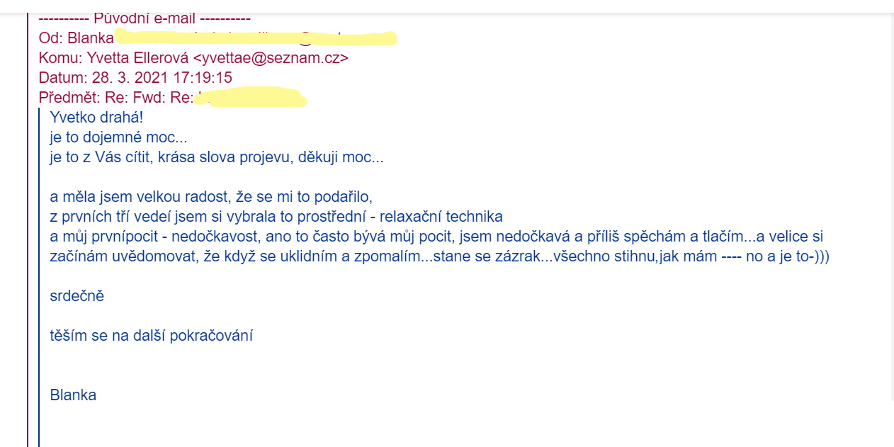 Přidávám pár zpráv od lidí, kterým moje služba pomohla proměnit starosti do radosti